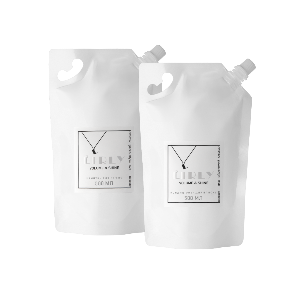 Набір включає шампунь LIRLY Volume & Shine Refill 500 мл та кондиціонер LIRLY Volume & Shine Refill 500 мл, створені за сучасними технологіями для ефективного догляду за волоссям.